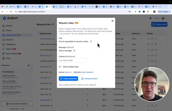 Make it easier for your customers to show you what’s going wrong and capture the technical details behind it. Zight’s Request Video feature lets you collect both a screen recording and browser logs, like console errors and network activity, with just a few clicks. This step-by-step guide shows you how to enable the feature, install the snippet, and customize request links so you can troubleshoot faster and more effectively.