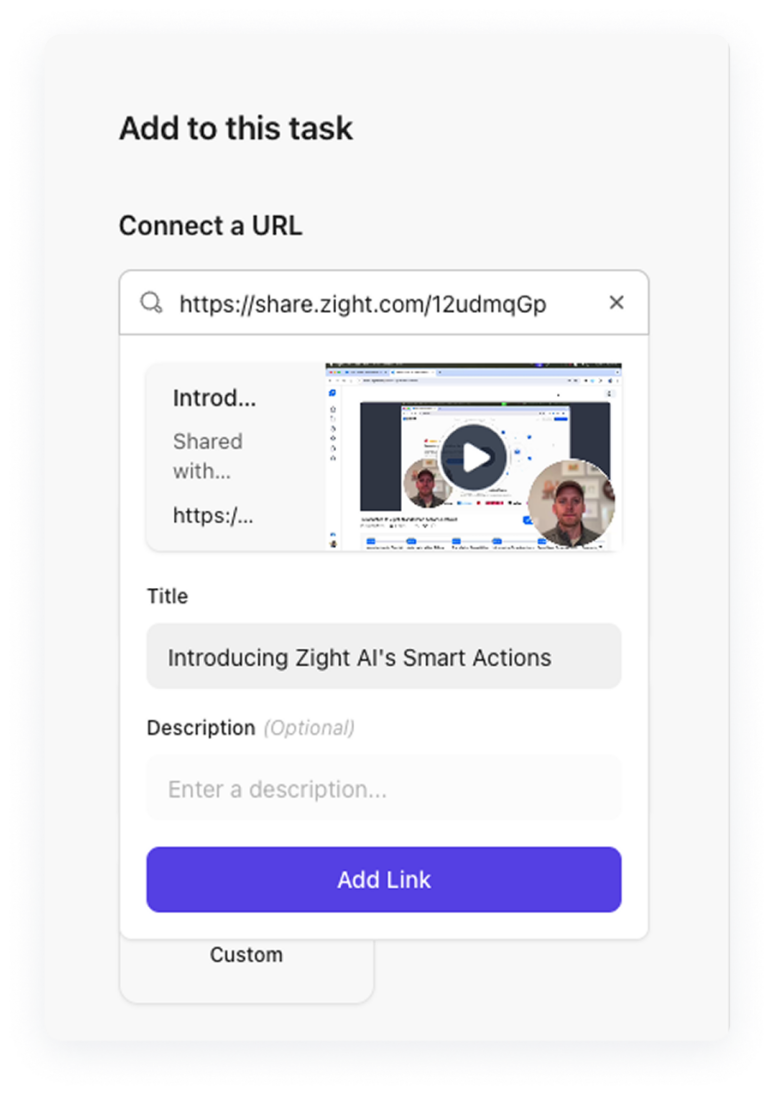 Simply capture your screenshot or video using Zight, copy the shareable link, and paste it into your ClickUp task or update.