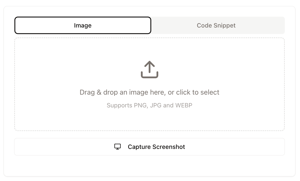 The editor is lightweight and fast. You only need to load an image or code snippet, and you’ll see two sections: a preview pane on the left and customization controls on the right.