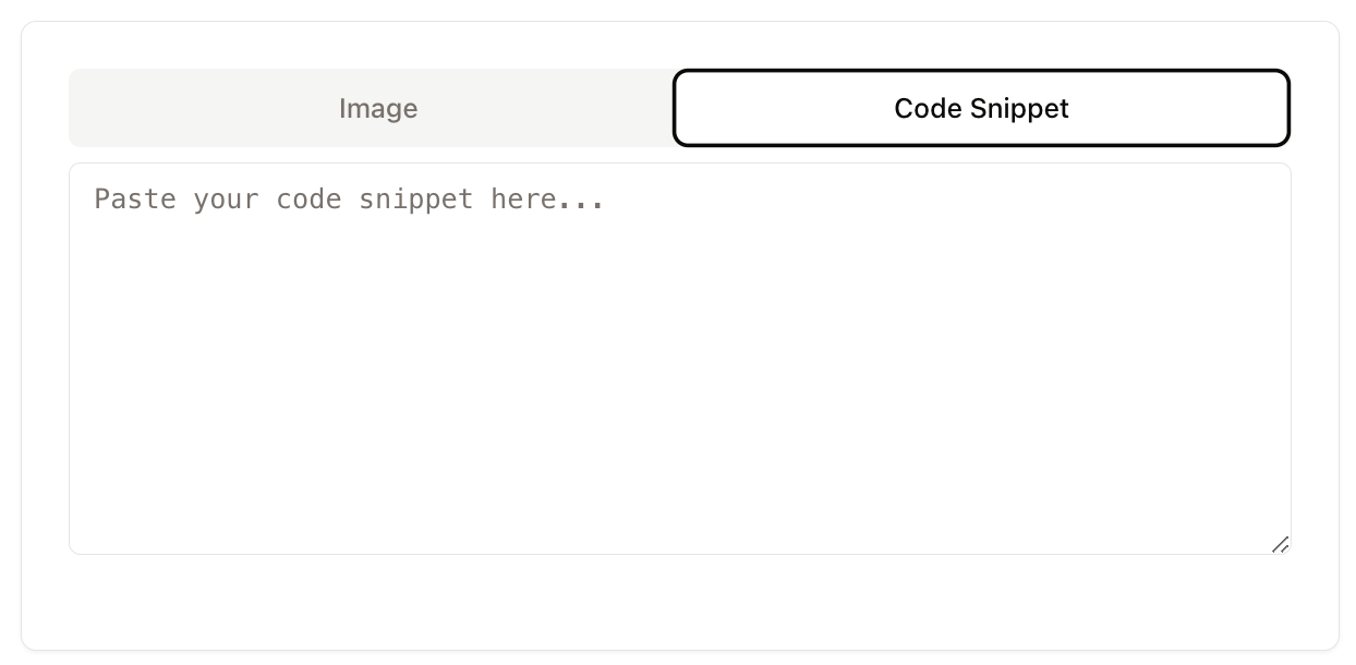 Using the code snippet background editor follows a workflow similar to that of the image background editor. Start by switching to the “Code Snippet” tab in the editor interface. You’ll see a text area where you can write or paste your code.