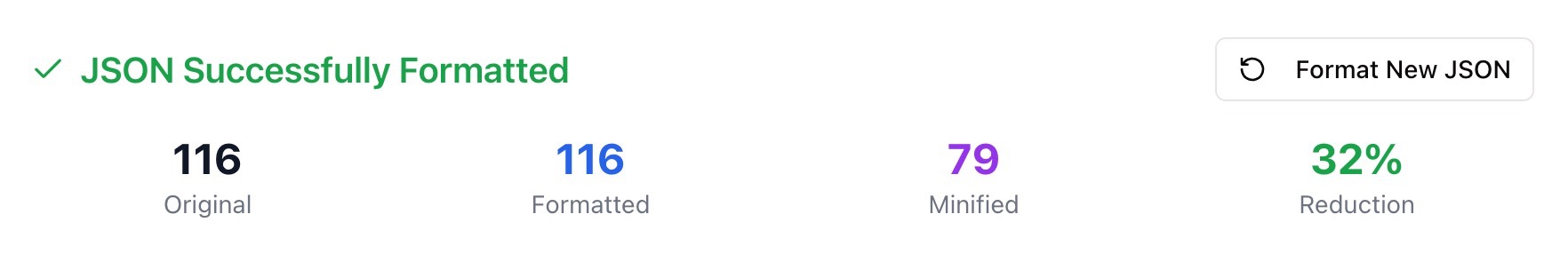 You can toggle between formatted and minified views to suit your workflow. The formatted view helps you analyze structure, while the minified view keeps things compact for storage or transmission.